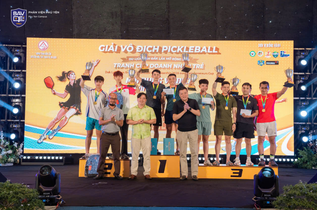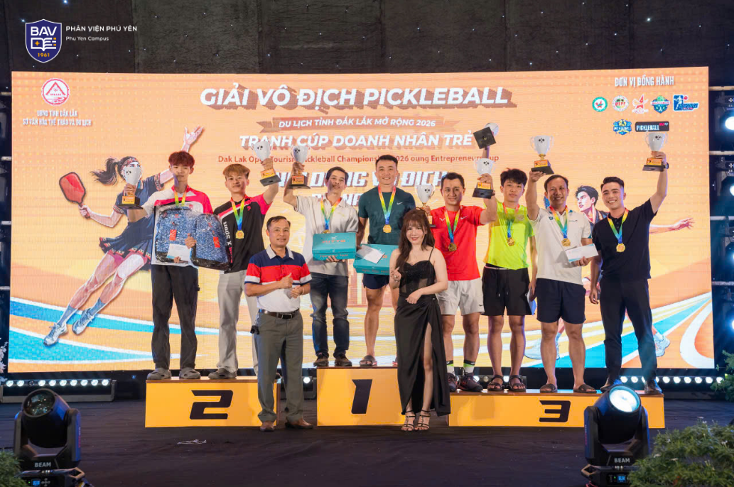 Từ nền tảng đó, sinh viên BAV Phú Yên không chỉ dừng lại ở phong trào nội bộ mà còn mạnh dạn tham gia các giải đấu quy mô lớn. 𝐓𝐚̣𝐢 𝐆𝐢𝐚̉𝐢 𝐯𝐨̂ đ𝐢̣𝐜𝐡 𝐏𝐢𝐜𝐤𝐥𝐞𝐛𝐚𝐥𝐥 𝐃𝐮 𝐥𝐢̣𝐜𝐡 𝐭𝐢̉𝐧𝐡 Đ𝐚̆́𝐤 𝐋𝐚̆́𝐤 𝐦𝐨̛̉ 𝐫𝐨̣̂𝐧𝐠 𝐧𝐚̆𝐦 𝟐𝟎𝟐𝟔 – 𝐭𝐫𝐚𝐧𝐡 𝐂𝐮́𝐩 𝐃𝐨𝐚𝐧𝐡 𝐧𝐡𝐚̂𝐧 𝐭𝐫𝐞̉, sinh viên BAV đã ghi dấu ấn với những thành tích đáng tự hào.